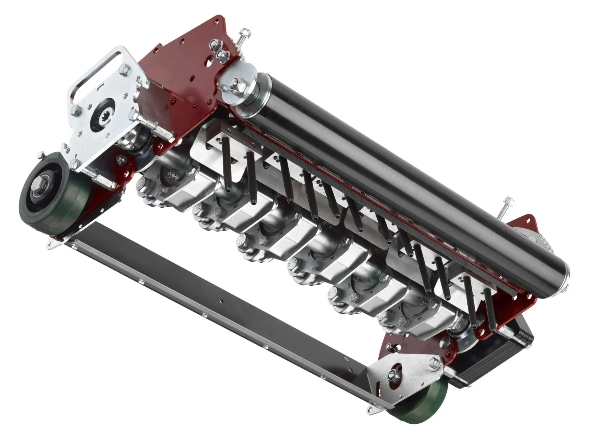 Overseeding grass is important to keep it strong and resistant against all kinds of outside threats. Regular overseeding keeps your grass green and healthy. In the past there were two ways of overseeding: hand seeding or by using big and heavy machinery. But then the MAREDO GT410 VibeSpike-SeederF was introduced. The GT410 heads are great instruments for accurate overseeding or interseeding Bentgrasses. The perfectly accurate seeding system contribute to a very high germination rate. Vibratory spikes first create a perfect pattern of dimples. Next the seed will drop right into these holes followed by a light brush and weight roller on the back. The pattern of dimples will not affect ball roll and will disappear fast. The GT410 VibeSpike-SeederF heads are ideal for overseeding Bentgrass greens.